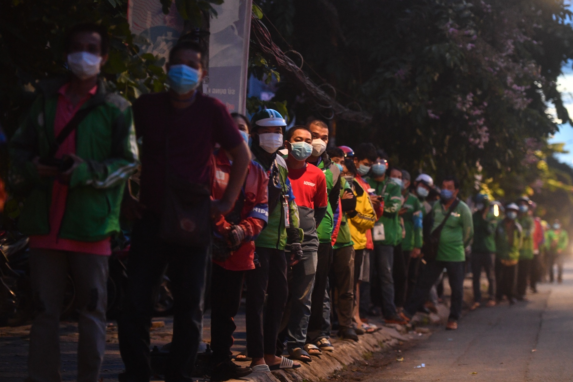 SHIPPER Ở TP.HCM XẾP HÀNG DÀI HÀNG TRĂM MÉT CHỜ XÉT NGHIỆM