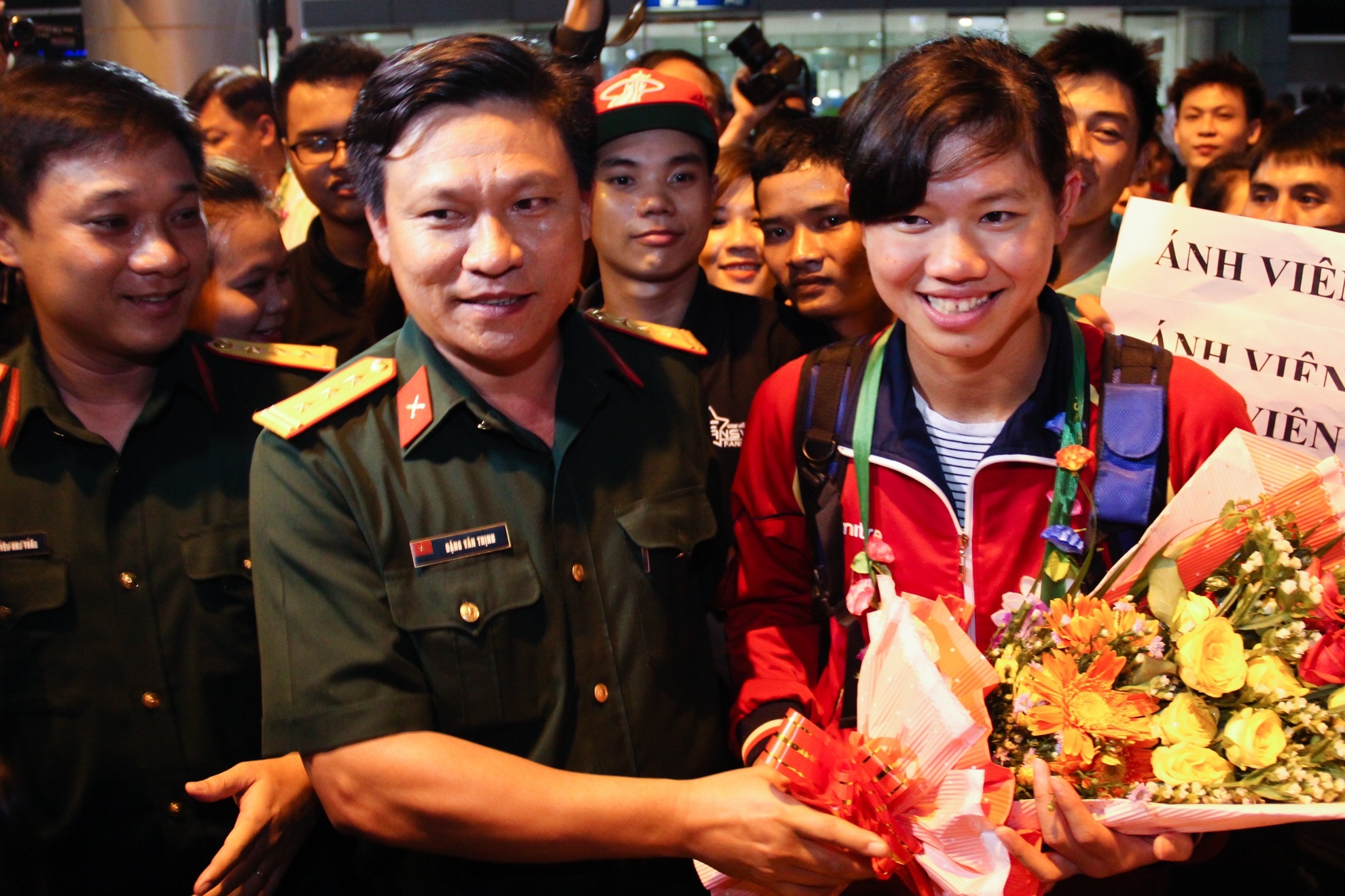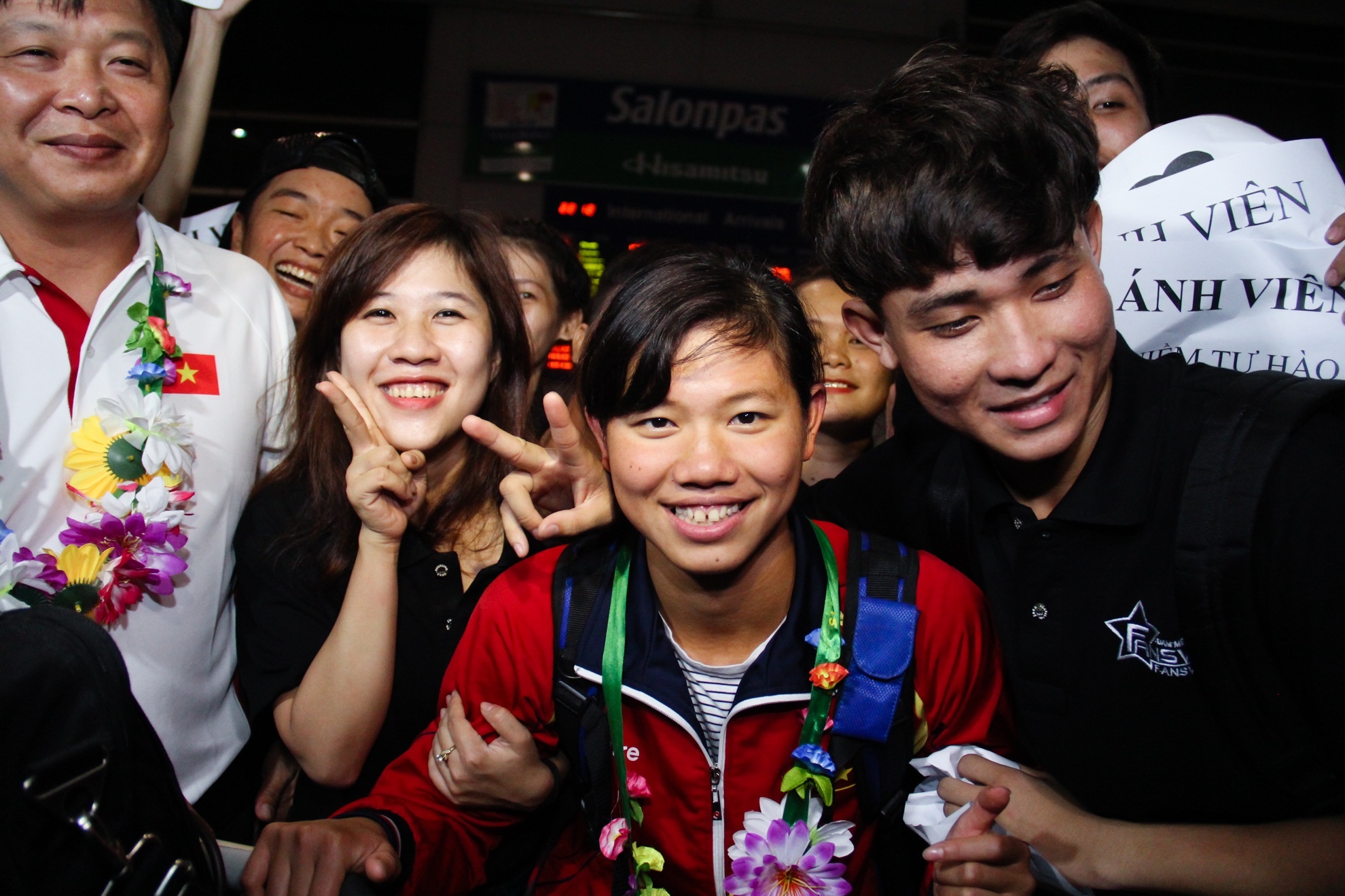 22h tối 12/6, Ánh Viên cùng HLV Đặng Anh Tuấn đáp chuyến bay xuống Tân Sơn Nhất từ Singapore - nơi để lại nhiều kỷ niệm đẹp với kình ngư 19 tuổi người Cần Thơ trong suốt 1 tuần qua. Cô đã giành 8 HCV, phá 8 kỷ lục SEA Games, trở thành VĐV giành nhiều HCV cá nhân nhất lịch sử SEA Games từ năm 1993.