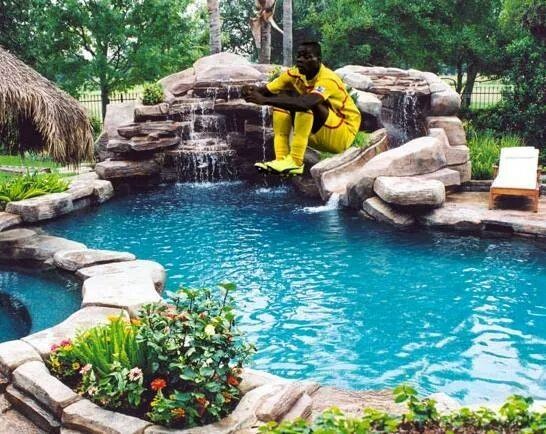 | Balotelli chơi trò nhảy qua một thác nước nhỏ trong công viên. |