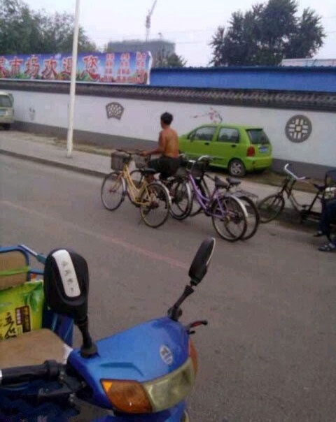 | Nghệ nhân dắt xe đạp. |