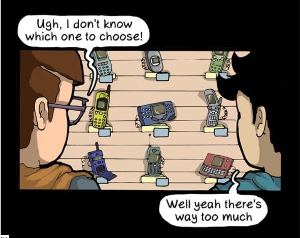 | Chọn mua điện thoại năm 1997: người dùng khó lựa chọn vì có quá nhiều kiểu dáng, mẫu mã khác nhau. |