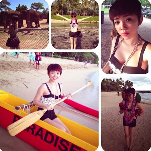 | Tóc Tiên vừa quay lại Mỹ sau kỳ nghỉ dài ở Việt Nam lại “quậy tung trời” ở một bãi biển. Nữ ca sĩ diện quần shorts và crop top khi đi bơi thuyền. |