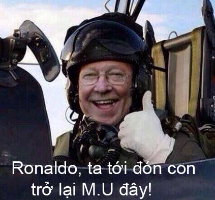 Cộng đồng ảnh chế cho rằng, người lái chiếc máy bay mang dòng chữ COME HOME RONALDO không ai khác, chính là HLV huyền thoại của M.U, Sir Alex Ferguson.
