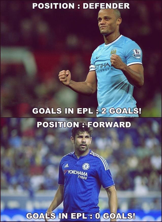 Sau 2 trận đầu tiên ở Premier League mùa này, tiền đạo chủ lực Diego Costa của Chelsea chưa có bàn thắng nào, trong khi đó trung vệ Kompany ghi bàn trong 2 vòng đấu liên tiếp.