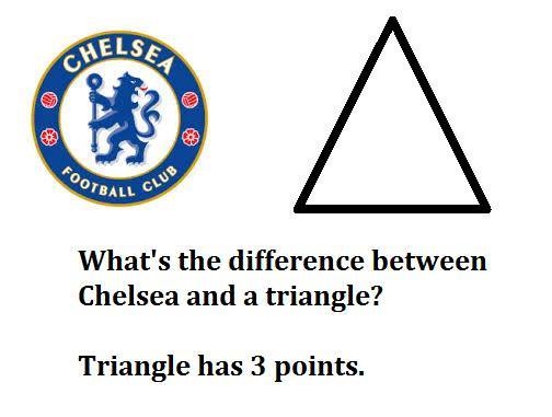 Sự khác nhau giữa Chelsea và hình tam giác là gì? Chelsea chỉ có 1 điểm, trong khi đó hình tam giác có 3 điểm.