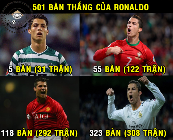 Cúp đúp vào lưới Malmo tại Champions League giúp Cristiano Ronaldo nâng tổng số pha lập công trong suốt sự nghiệp lên 501 bàn. Trong đó, hiệu suất ghi bàn của siêu sao người Bồ Đào Nha tại Real Madrid rất ngưỡng mộ.