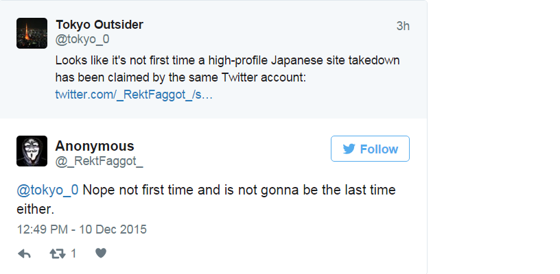 | Thông báo của nhà chức trách Nhật Bản và lời đe dọa từ Anonymous trên Twitter. |