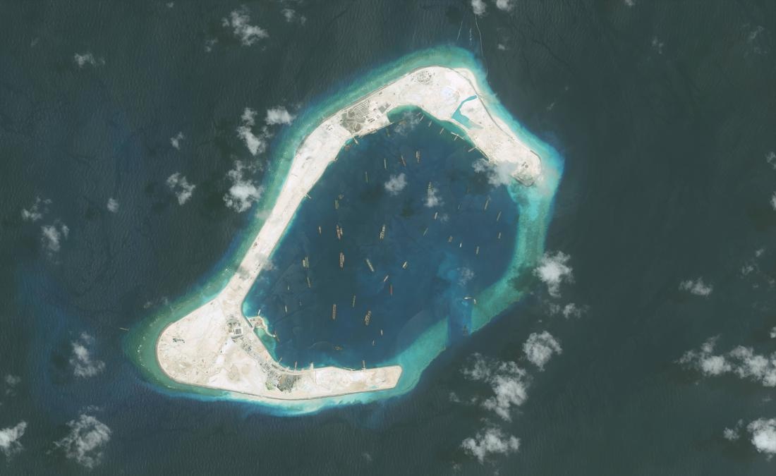 | Ảnh vệ tinh chụp ngày 1/9 cho thấy các hoạt động phi pháp của Trung Quốc trên đá Xu Bi thuộc quần đảo Trường Sa của Việt Nam. Ảnh: DigitalGlobe |