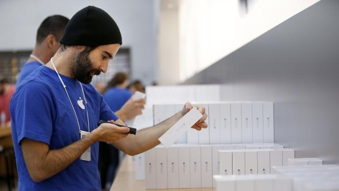 | Nhân viên tại cửa hàng Apple Store được trả 12-18 USD cho mỗi giờ làm việc. Ảnh: Yahoo. |