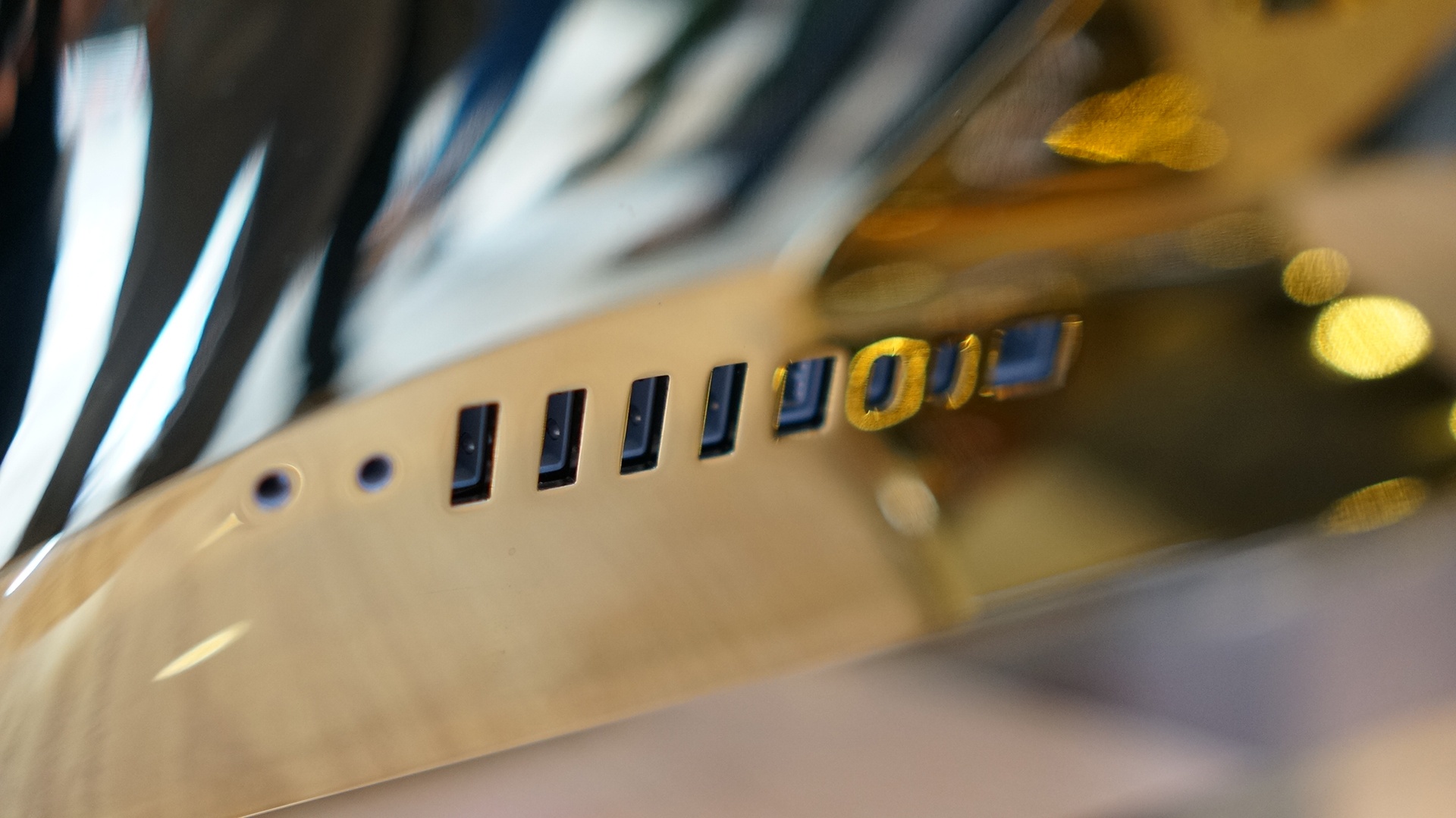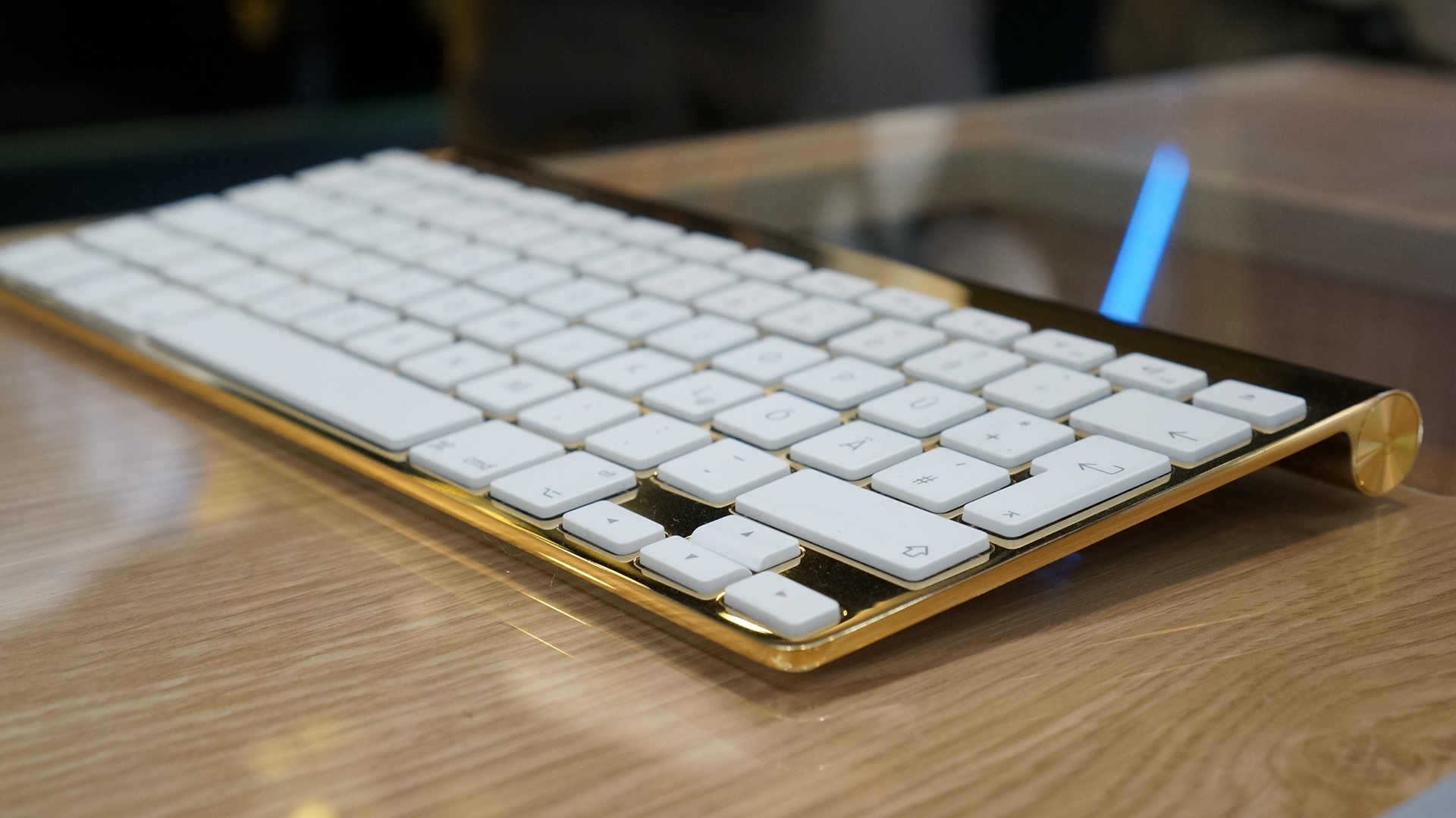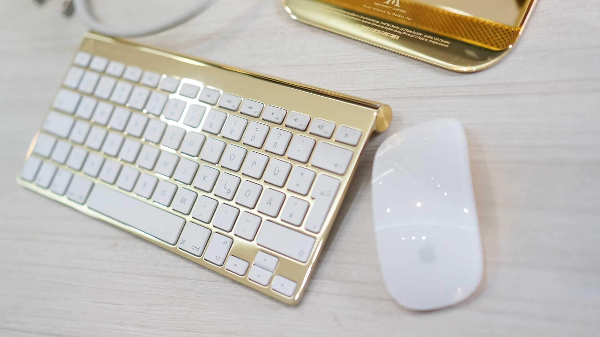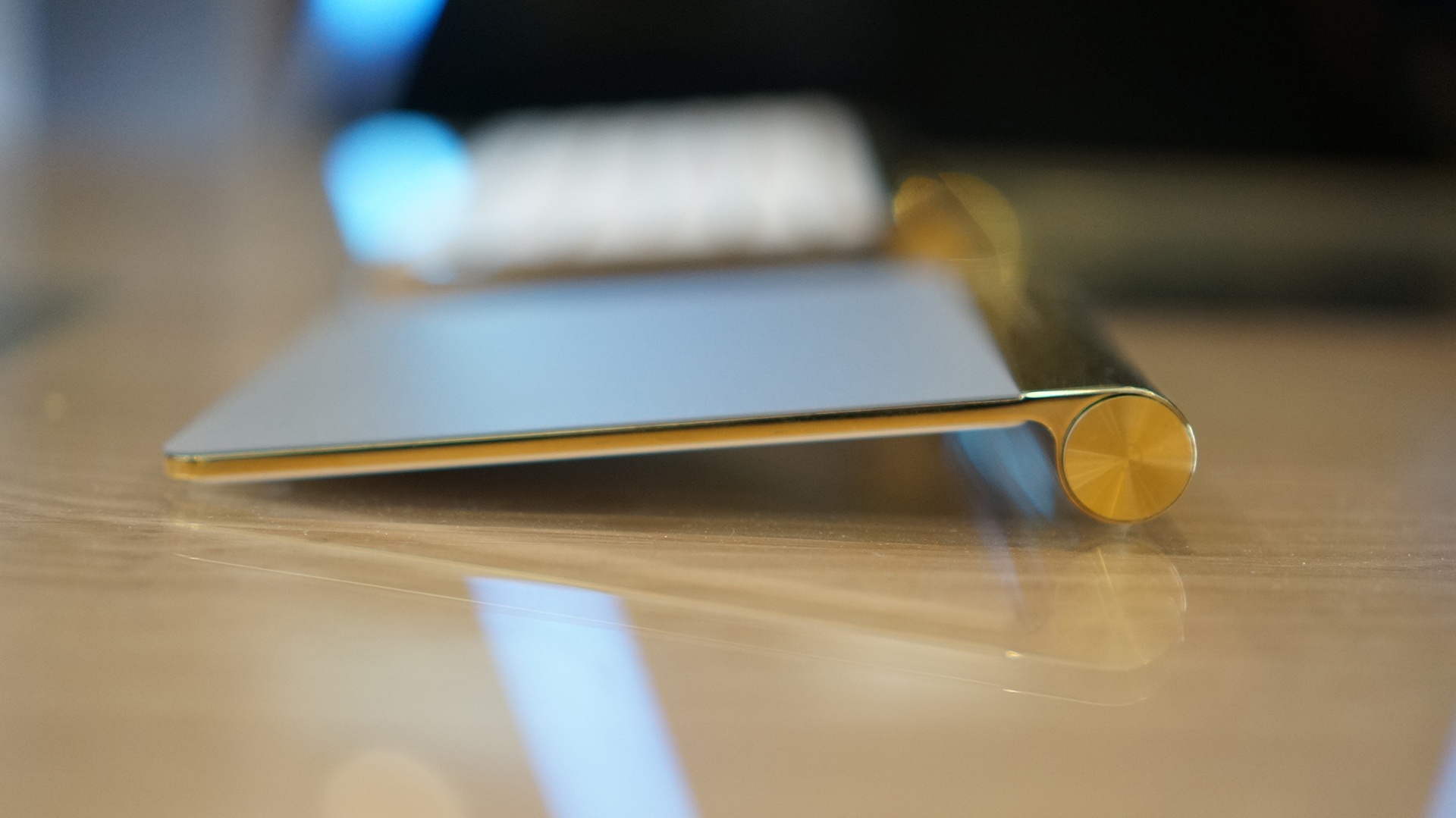 | Touchpad rời cũng được mạ vàng phần viền và lưng. Để duy trì khả năng cảm ứng, mặt trên của thiết bị này vẫn được giữ nguyên, không mạ vàng. |