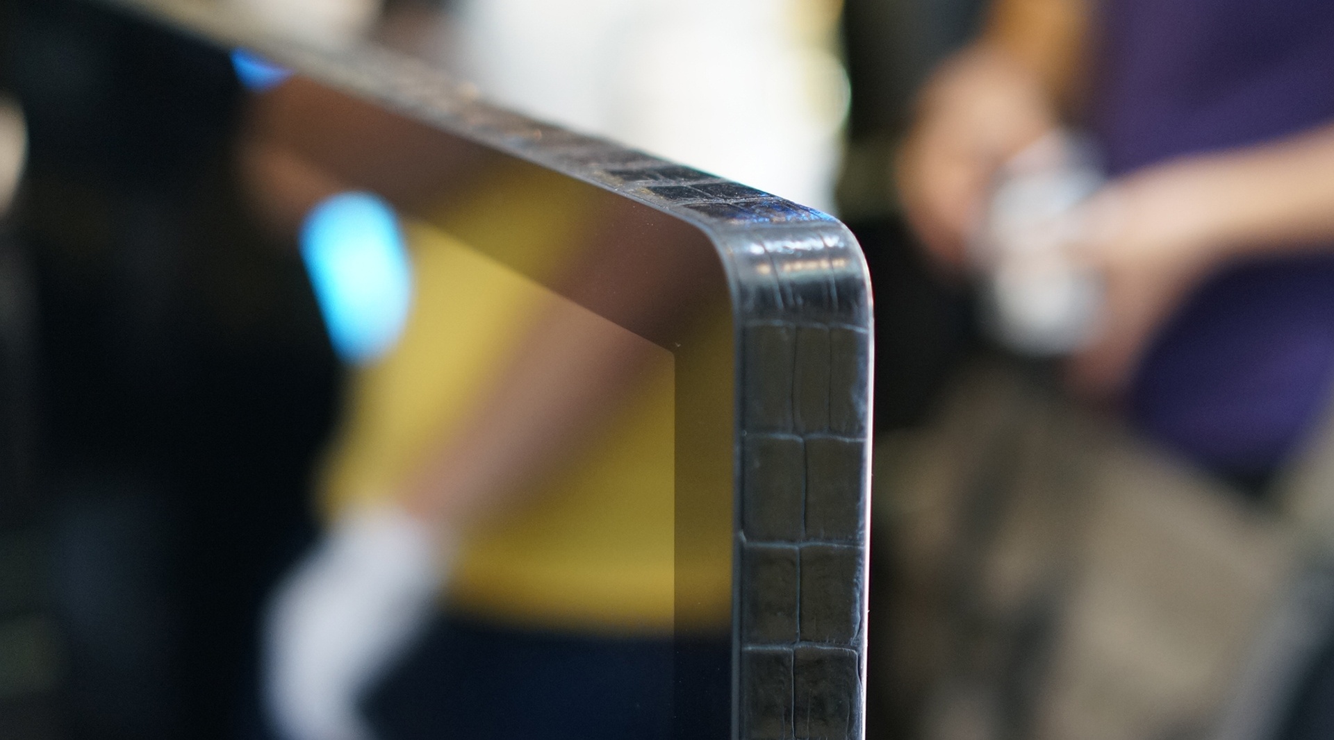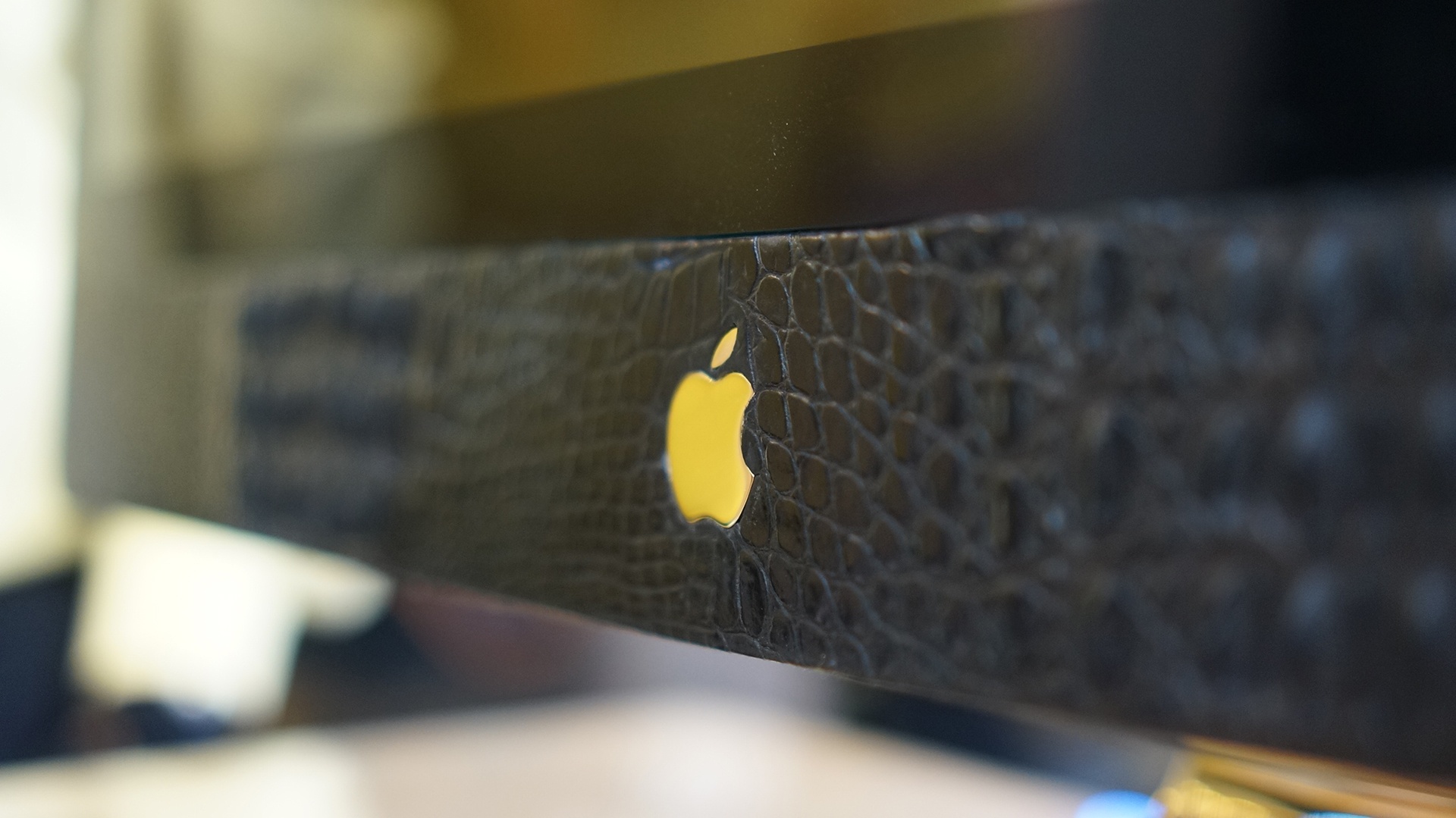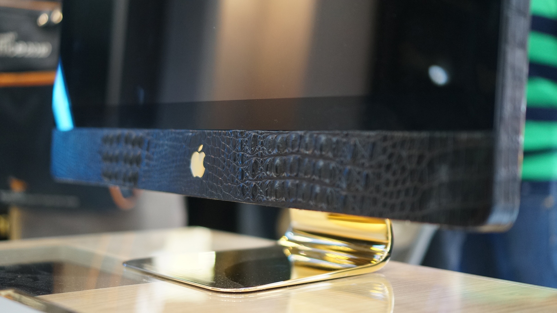| Các cạnh của chiếc iMac được bọc bằng da cá sấu thật. |