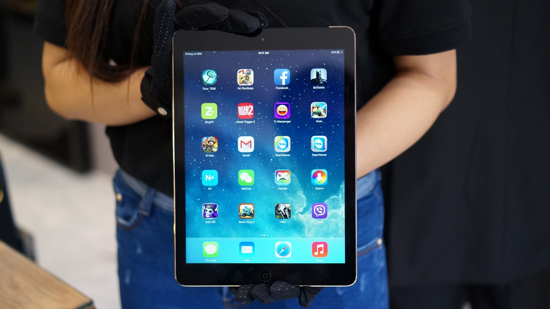 | Toàn bộ mặt sau của máy được mạ vàng, trừ các cổng kết nối và logo quả táo. |