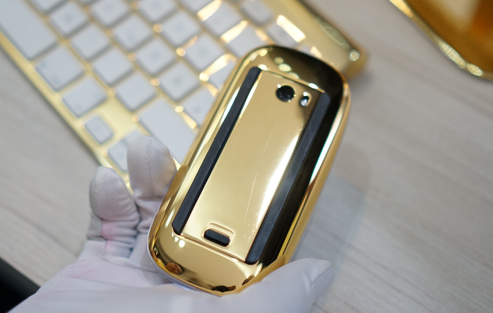 | Mặt dưới của con chuột Magic Mouse được mạ vàng. |