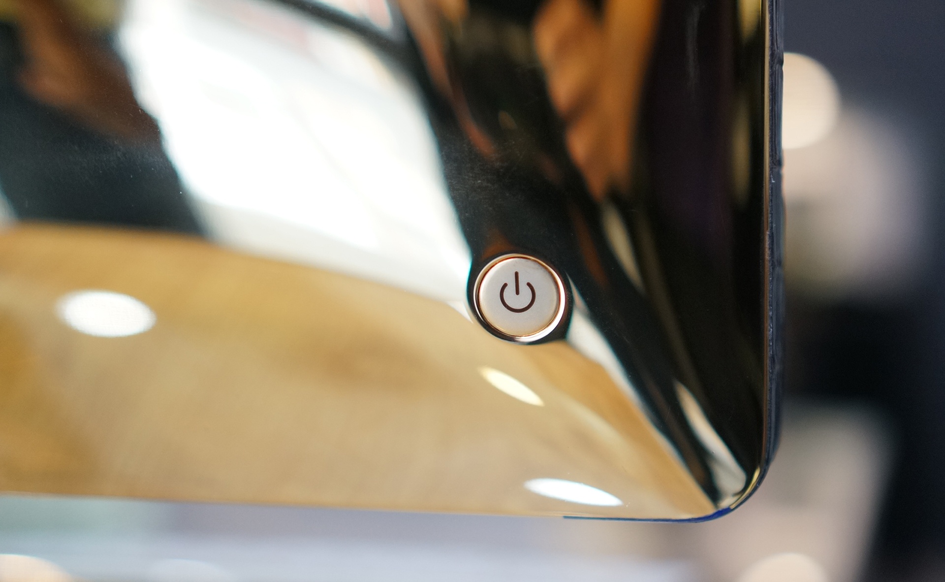| Phím nguồn cũng được phủ một lớp sơn màu vàng để tiệp với lớp mạ xung quanh. |