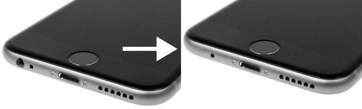 | Nếu sử dụng cổng Lightning, iPhone 7 sẽ mỏng hơn khá nhiều. Ảnh: Gsmarena. |