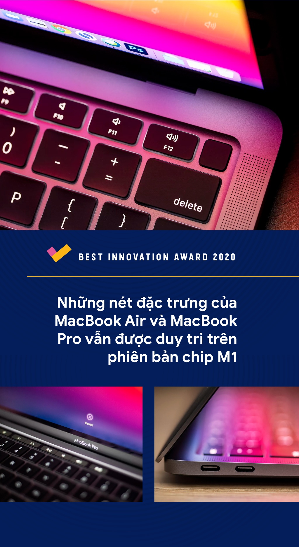 Được ra mắt vào tháng 11/2020, bộ đôi MacBook M1 gồm các mẫu MacBook Air và MacBook Pro. M1 là chip xử lý do Apple tự phát triển dựa trên kiến trúc ARM, thay cho CPU Intel sau gần 15 năm sử dụng.