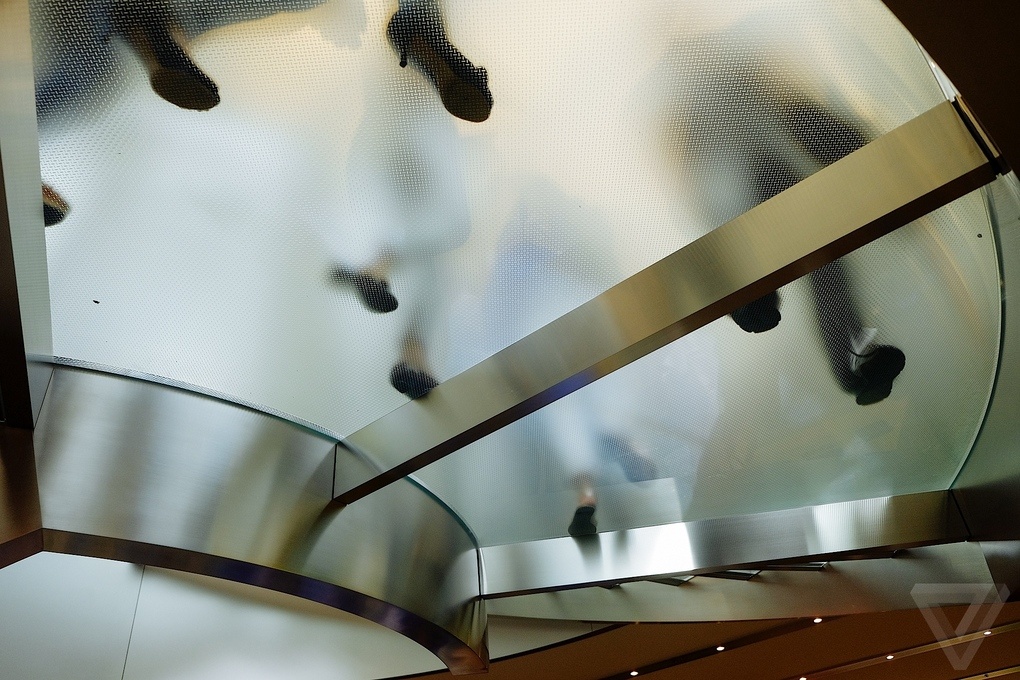 | Ngay dưới logo của Apple là lối thang bộ theo hình xoắn ốc. |