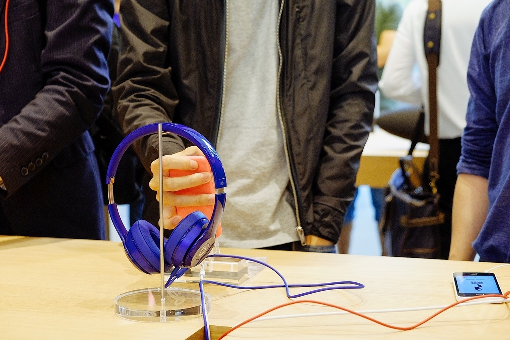 | Khách hàng kiểm tra tai nghe Beats, thương hiệu vừa được Apple mua lại bằng thương vụ trị giá 3 tỷ USD. |