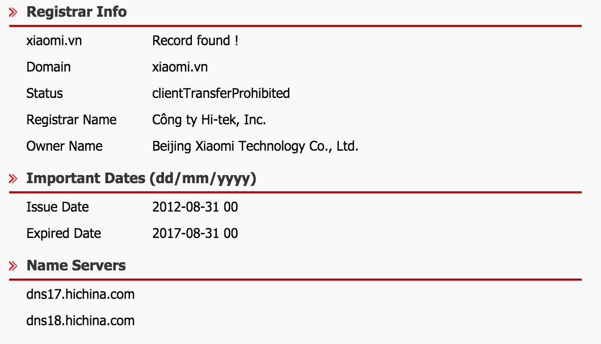 | Xiaomi đã mua và "nuôi" tên miền Xiaomi.vn từ 2 năm trước. |