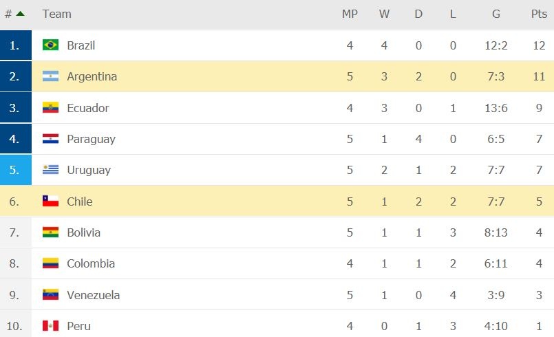 Ở trận đấu sớm, Luis Suarez cùng đồng đội bị Paraguay cầm hòa 0-0 ngay trên sân nhà. Với chỉ 1 điểm, tuyển Uruguay lỡ cơ hội chen chân vào top 4.