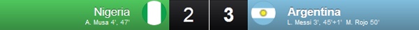 Kết thúc trận đấu, Argentina giành chiến thắng 3-2 trước Nigeria.