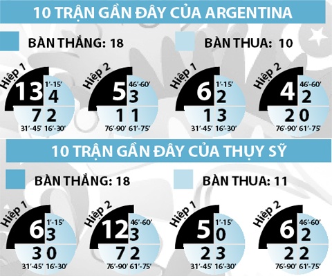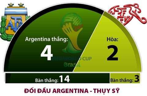 - Theo châu Á, Argentina thắng 3 thua 6 ở 9 trận gần đây; còn Thụy Sỹ thắng 5 thua 4 ở 9 trận vừa qua.