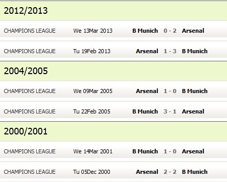 Sẽ là quá sớm để khẳng định chiếc vé sẽ thuộc về Bayern. Tuy nhiên, nếu nhìn vào lịch sử thì rõ ràng lợi thế đang nghiêng về đại diện nước Đức. Cụ thể, Arsenal từng đụng Bayern 6 lần trong quá khứ. Tại vòng bảng Champions League mùa 2000/01, sau khi cầm hòa với tỷ số 2-2 tại Highbury (sân cũ của Arsenal), Bayern đã giành chiến thắng 1-0 trong trận lượt về, qua đó thống trị bảng C với 18 điểm. Arsenal đứng thứ 2 với 8 điểm.