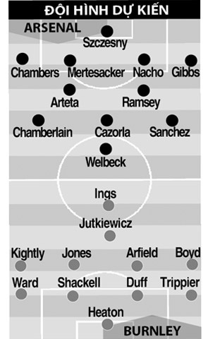 Đêm nay, Sanchez và Welbeck hứa hẹn sẽ có nhiều cơ hội để thể hiện tài năng, bởi đối thủ chỉ là một Burnley đang đứng cuối BXH. Tân binh này được xem như túi đựng bóng và hiện đang là CLB thủng lưới nhiều thứ 4 tại Premier League 2014/15. Chỉ riêng 3 vòng gần đây, Burnley đã phải vào lưới nhặt bóng đến 8 lần. Đặc biệt, tuyến dưới Burnley rất ngại phải đối đầu với những cầu thủ nhanh nhẹn và có khả năng đi bóng lắt léo như Alexis Sanchez, Theo Walcott…