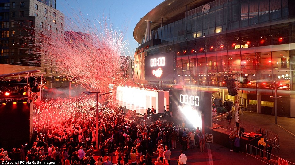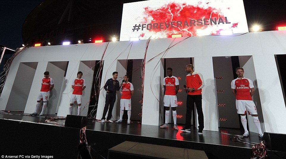 | Buổi công bố áo đấu sân nhà của Arsenal được tổ chức bên ngoài sân Emirates tối 15/6. |