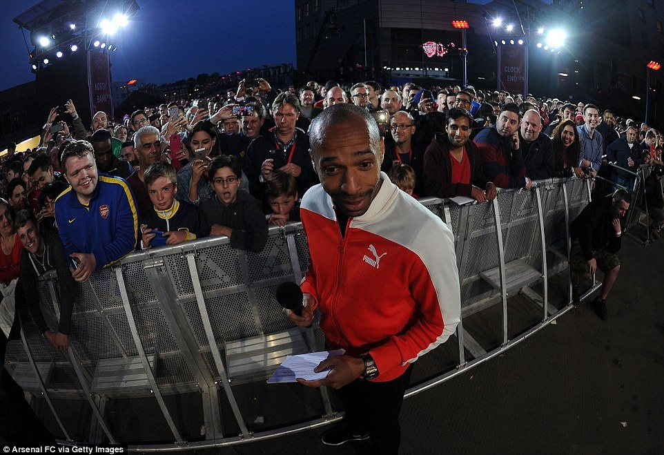 | Cựu tiền đạo Henry với vai trò người dẫn chương trình giao lưu cùng người hâm mộ "Pháo thủ". |