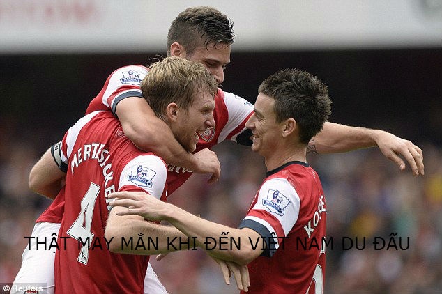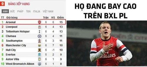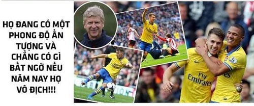 Pháo thủ vững vàng ở vị trí số 1 sau 5 trận thắng liên tiếp. Chứng kiến màn trình diễn ấn tượng của đoàn quân do HLV Wenger dẫn dắt, người hâm mộ Arsenal đã chế bộ ảnh vui liên quan đến sự kiện CLB chủ sân Emirates đến Việt Nam.