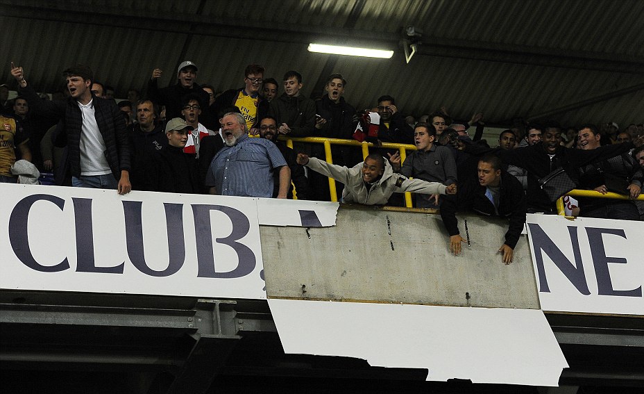 | Các CĐV đội khách phấn khích với hành động mang tính phá hoại. |