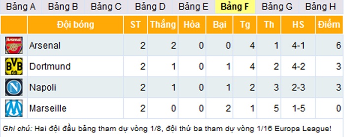 01h45 ngày 23/10, sân Emirates, vòng bảng Champions League: Arsenal - Dortmund