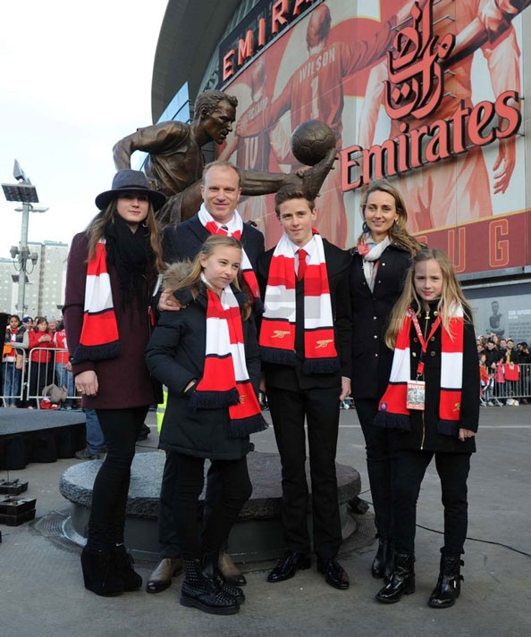 | Bergkamp và gia đình trong lễ khánh thành bức tượng. |