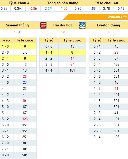 Tuy nhiên, sự ổn định trên sân khách của Everton luôn bị đặt dấu hỏi. Trận thua duy nhất của họ là thất bại 1-3 trên sân Etihad của Man City. Chưa hết, Everton từng để những đội bóng rất yếu là Norwich, Cardiff, Crystal Palace cầm hòa khi xa nhà. Lịch sử cũng chống lại Everton khi họ không thắng được trận nào, thua 14/17 lần gần nhất hành quân đến sân Arsenal.