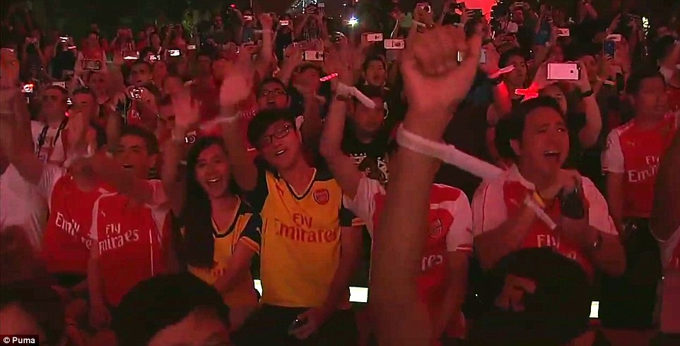 | Người hâm mộ Arsenal ở Singapore thích thú khi chứng kiến buổi giới thiệu áo đấu của đội bóng yêu thích. |
