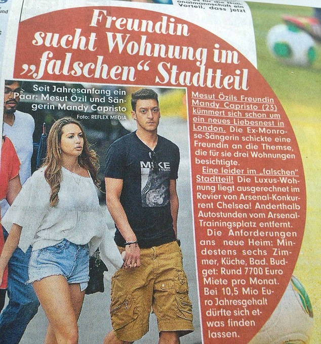 | Tờ Bild của Đức tiết lộ, sau khi bạn trai Oezil chuyển tới đầu quân cho Arsenal, Capristo đã tức tốc sang London để thuê nhà. |