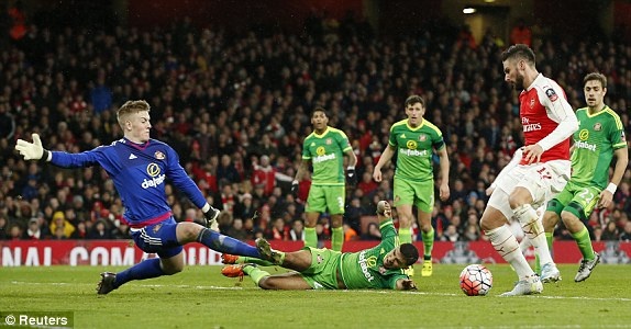 Bellerin tiếp tục để lại dấu ấn với pha băng xuống và căng bóng ngang khung thành Sunderland để Giroud đệm lòng ấn định chiến thắng chung cuộc 3-1 cho Arsenal. |