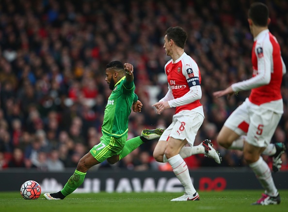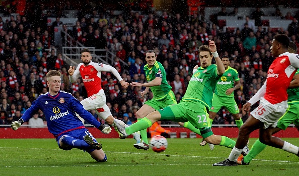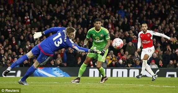 Sau khi Koscielny mắc sai lầm để mất bóng gần khu vực 16m50, Lens ghi bàn mở tỷ số cho Sunderland. Cầu thủ khoác áo số 17 của Sunderland thực hiện cú dứt điểm quyết đoán đánh bại thủ môn Petr Cech ở phút 16. |