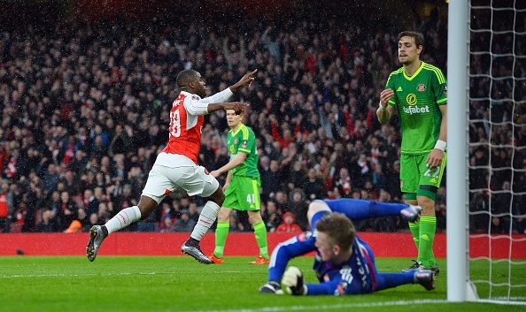 Phút 57, Chamberlain dứt điểm từ ngoài khu vực 16m50 đưa bóng dội cột dọc khung thành Sunderland. Sau đó, Walcott băng vào sút bồi không thành công. Nhằm tăng cường khả năng tấn công cho Arsenal, HLV Wenger đưa Ramsey và Mikel Arteta vào sân thay Alex Iwobi, Calum Chambers ở phút 67. |