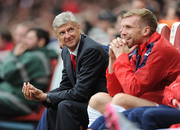 | HLV Wenger vui mừng khi chứng kiến màn trình diễn của các học trò trong các trận đấu chuẩn bị cho mùa giải 2015 - 2016. |