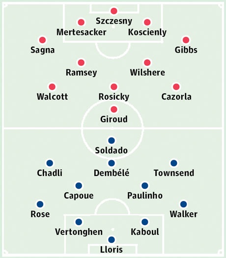 | Đội hình dự kiến ra sân của Arsenal và Tottenham. |