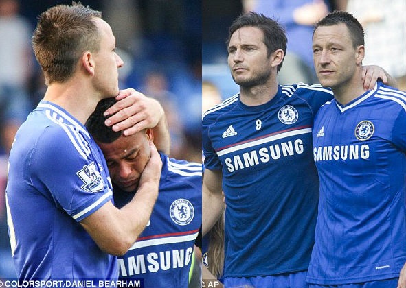 | John Terry và Lampard cũng không cầm được nước mắt khi chia tay Ashley Cole. |