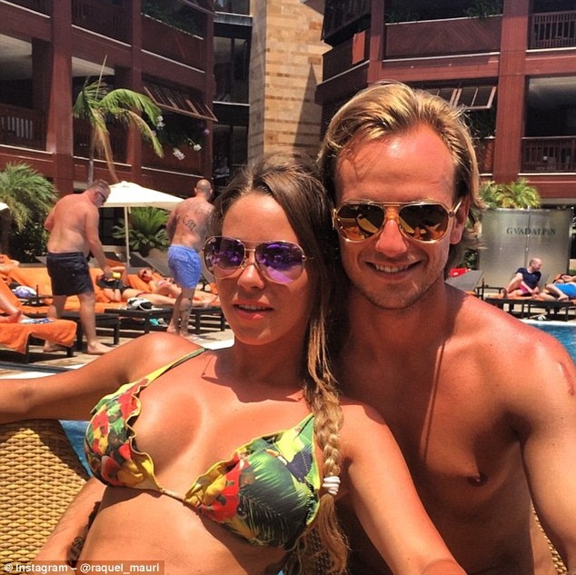 | Tiền vệ Ivan Rakitic của Barcelona khoe ảnh nghỉ dưỡng cùng vợ Raquel Mauri. |