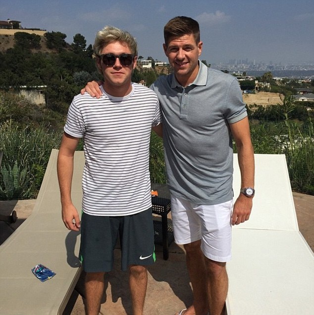 | Lão tướng Steven Gerrard chụp ảnh cùng ca sĩ Niall Horran của ban nhạc One Direction tại nhà mới ở Los Angeles. Cựu ngôi sao Liverpool vừa ra mắt CLB mới LA Galaxy ngày 8/7. |