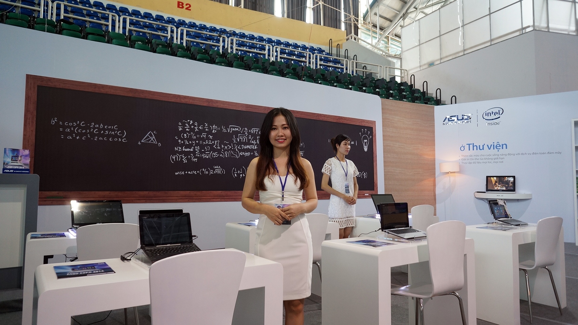 | Nhiều mẫu máy tính xách tay và thiết bị lai cũng được trưng bày tại Expo. Asus cũng mang đến mô hình một lớp học thông minh, trang bị cho mỗi học sinh một chiếc máy tính xách tay mỏng nhẹ. |