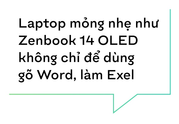 Gần đây, tôi cần đổi chiếc máy tính mới để làm việc, ưu tiên tiêu chí mỏng nhẹ, màn hình đẹp và yếu tố hiệu năng xếp sau. Khi tìm hiểu về sản phẩm mới, tôi phát hiện các nhà sản xuất đã tạo ra được những chiếc máy có hiệu suất mạnh mẽ, nhưng vẫn đảm bảo được thiết kế di động. Tiêu biểu là model Zenbook 14 OLED vừa ra mắt của Asus.