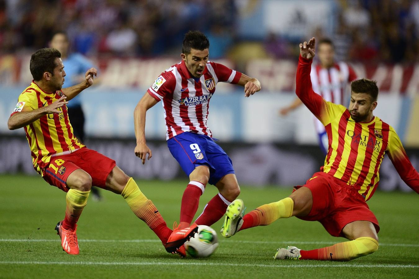 Atletico: Courtois; Juanfran, Godín, Miranda, Luis; Gabi, Tiago, Koke, Suarez, Diego; Villa.