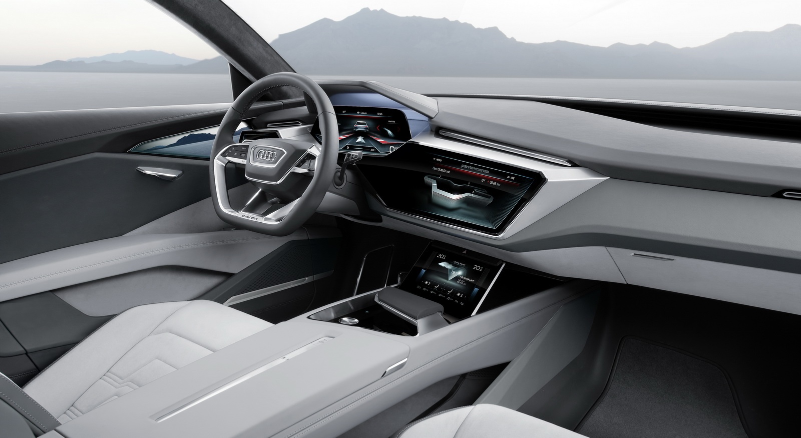 Mẫu xe ý tưởng E-tron Quattro từng được Audi trưng bày tại triển lãm xe Frankfurt 2015. Xe gây ấn tượng với cụm hiển thị trên bảng điều khiển trung tâm sử dụng màn hình OLED cong, với 2 màn hình hiển thị cho hệ thống đa phương tiện MMI. |