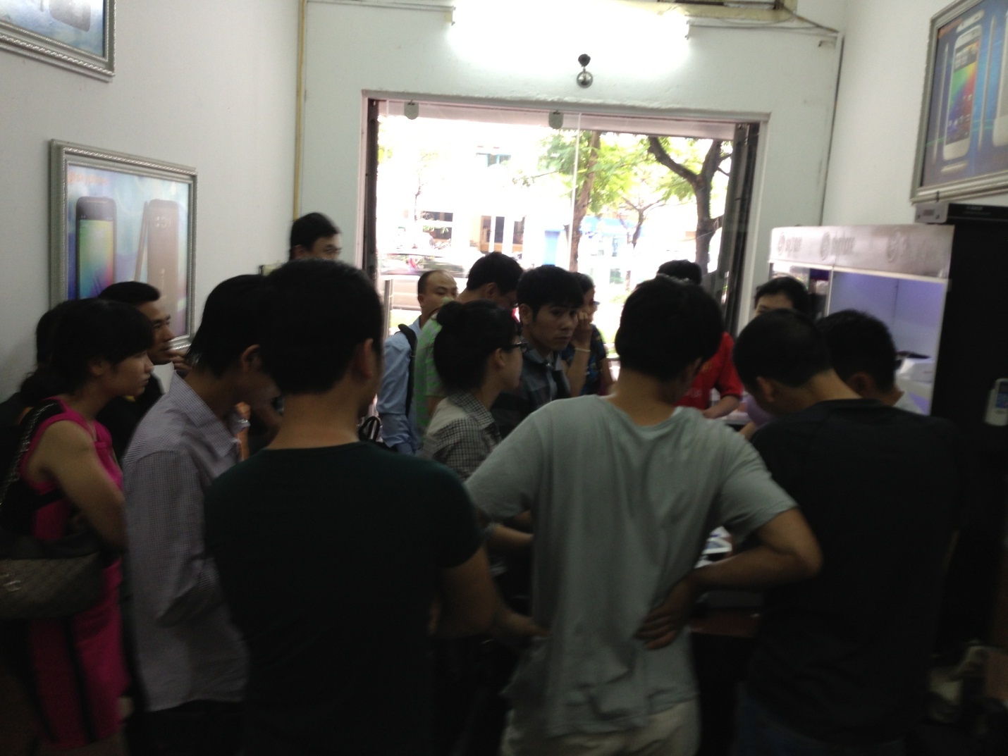 | Khách hàng chen nhau mua máy. |